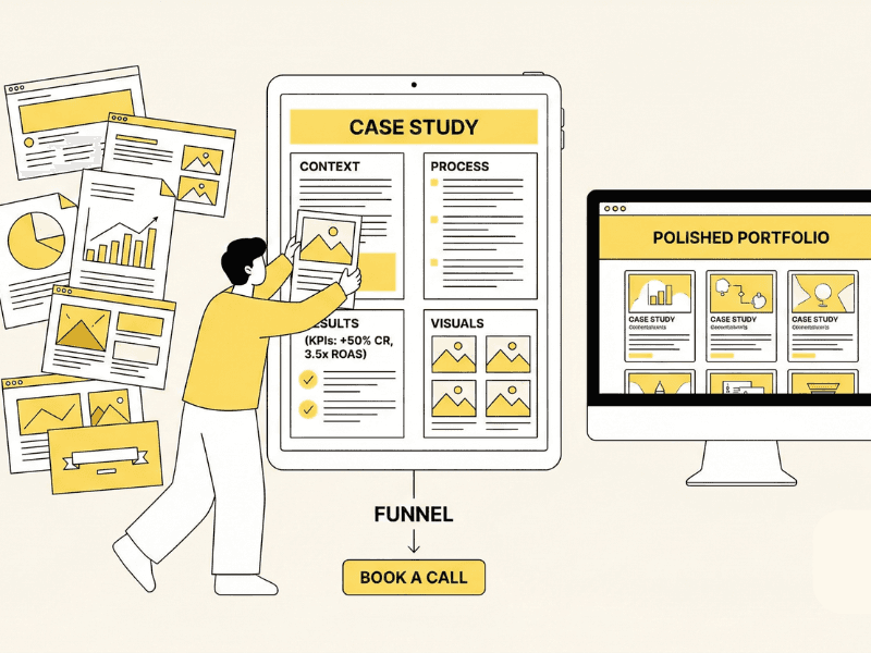 A conversion-first Copyfolio guide for UX & marketing pros—positioning, case-study structure, productized services, and CTAs that turn visitors into leads.