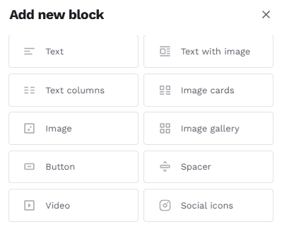 When creating blogs in Copyfolio, click “Add New Block” to build your content layout. For SEO and AI snippet optimization, we recommend using: